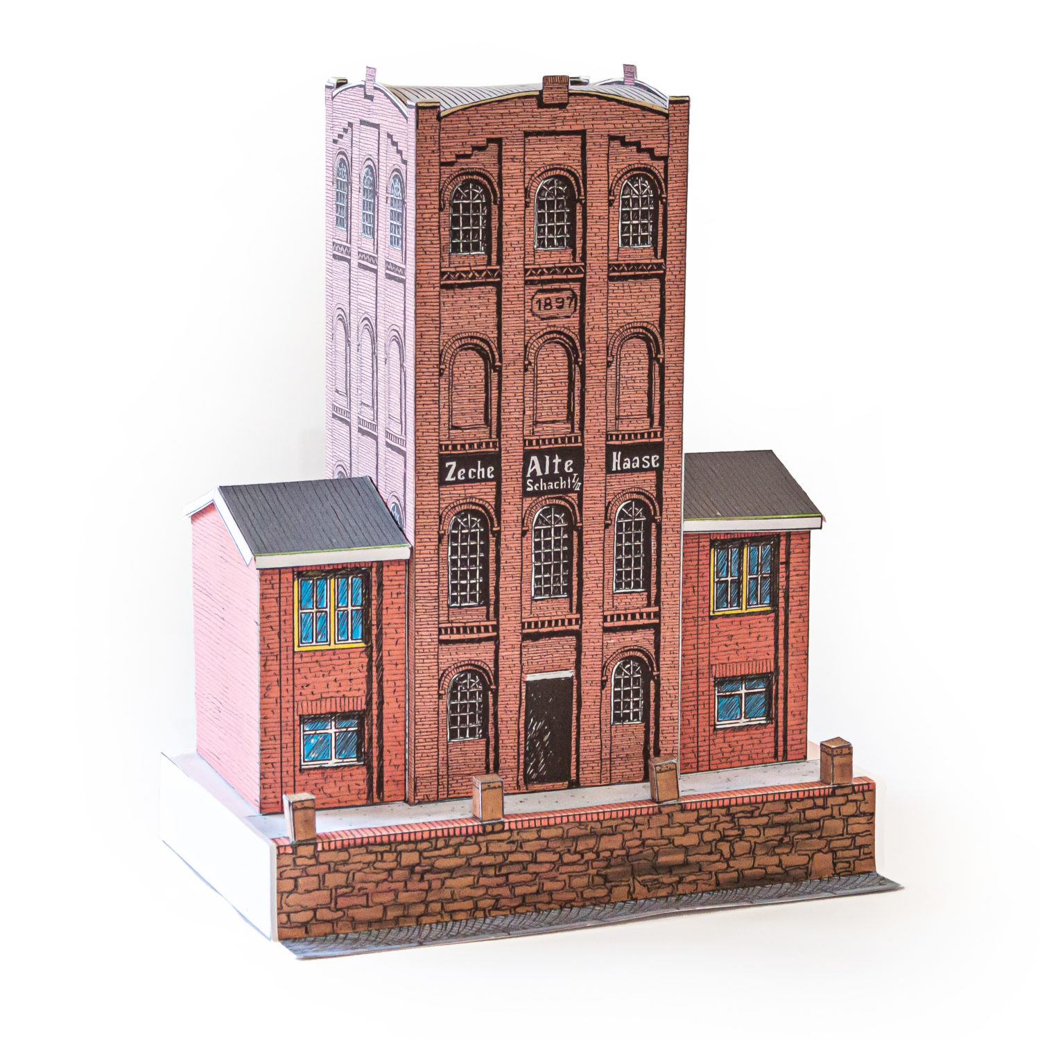 Fördergerüst. 1966 wurde die Zeche „Alte Haase“ geschlossen.